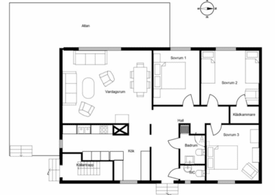 Hamnvillan har 4 rum och kök och plats för upp till 6 personer.
