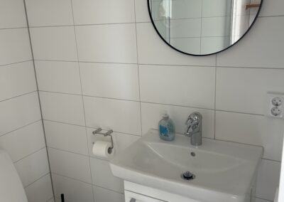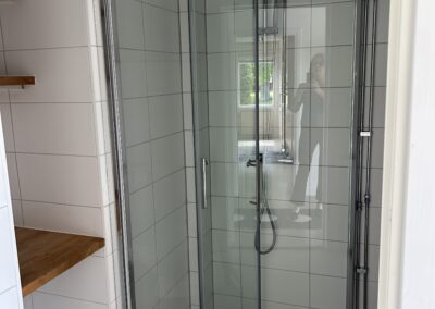 Badrum med dusch och WC i nyskick.