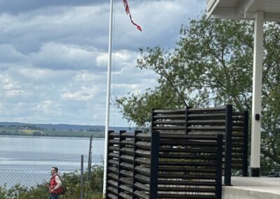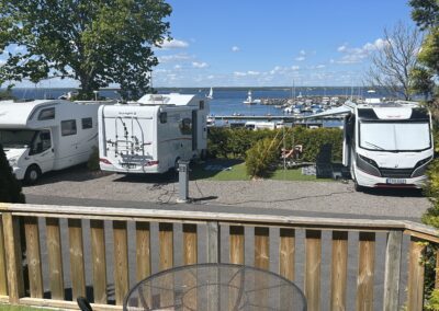 Stor altan med utsikt över Vättern och Gränna båthamn.